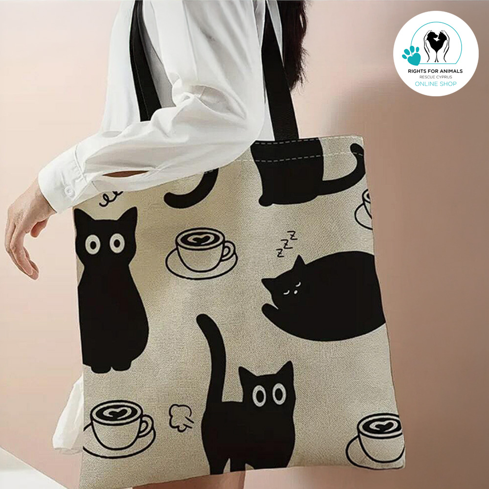 Cat Pattern Double-Sided Printed Linen Shoulder Tote Bag Shopping Bag Shoulder Bag Casual Travel Beach Bag Large Capacity Reusable Shoulder Shopping Bag School Bag,Back To School Backpack,Large Capacity
